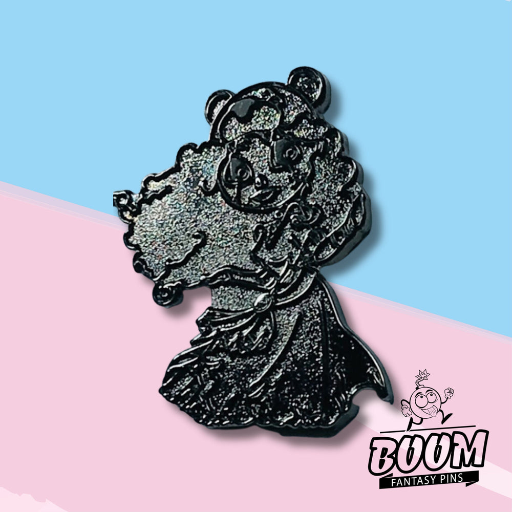 Plongez dans l'atmosphère mystique des Highlands écossaises à travers le regard de Merida. Les forêts enveloppées de brume, les secrets murmurés d'une magie ancestrale et la tension palpitante des batailles livrées au clair de lune forment une toile de fond immersive que cette broche capture avec éclat.