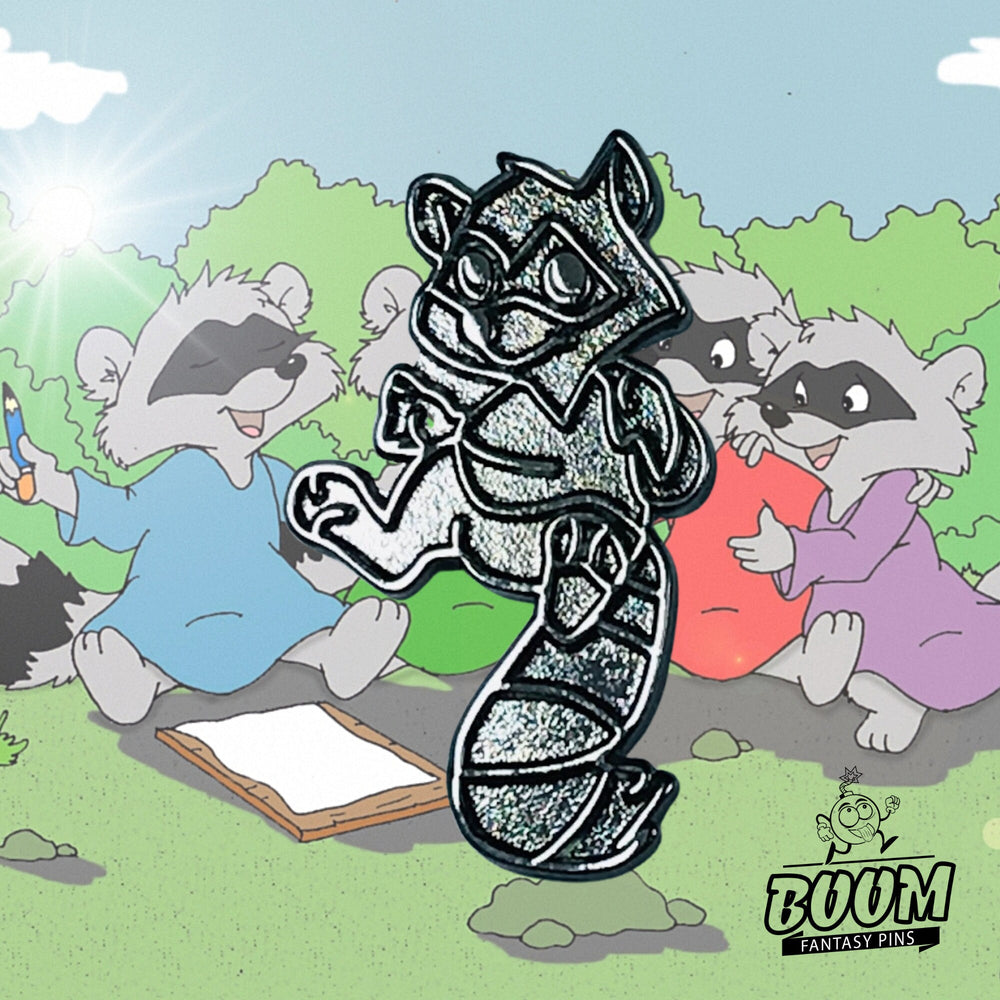 Grâce au talent artistique de Boom Fantasy Pins, cette histoire prend vie entre vos mains. Chaque coup de pinceau insuffle la vie à la fourrure vibrante du raton laveur, dont les yeux pétillent de malice et de tendresse. Chaque détail célèbre le charme unique du personnage et l'attrait féerique de la forêt, capturant l'âme même des royaumes enchantés de Sherwood.