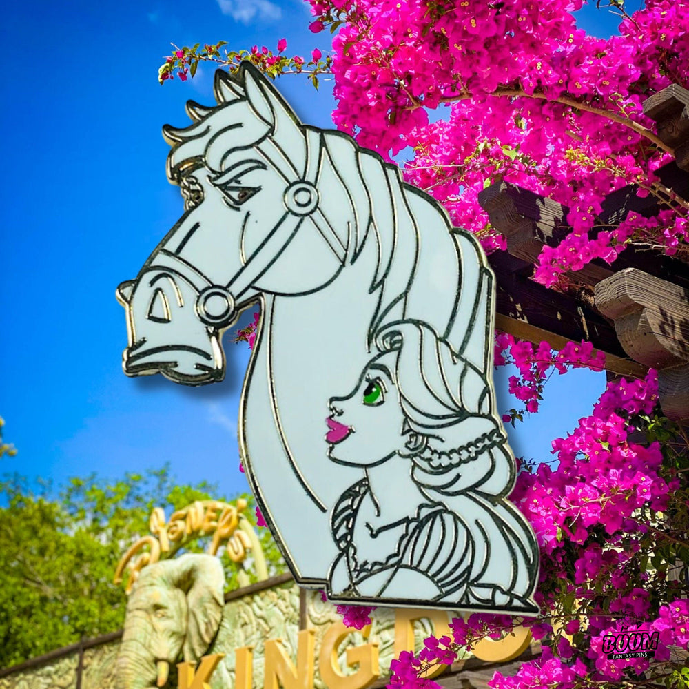 Célébrez l'univers enchanteur de Raiponce avec une pièce qui rend hommage aux thèmes intemporels du film : liberté, créativité et connexion. Cette broche exquise vous invite à entreprendre votre propre chemin, inspirée par la lumière de Raiponce et la force de caractère de Maximus.
