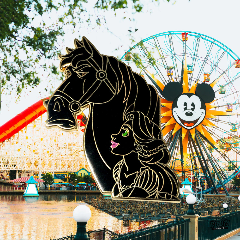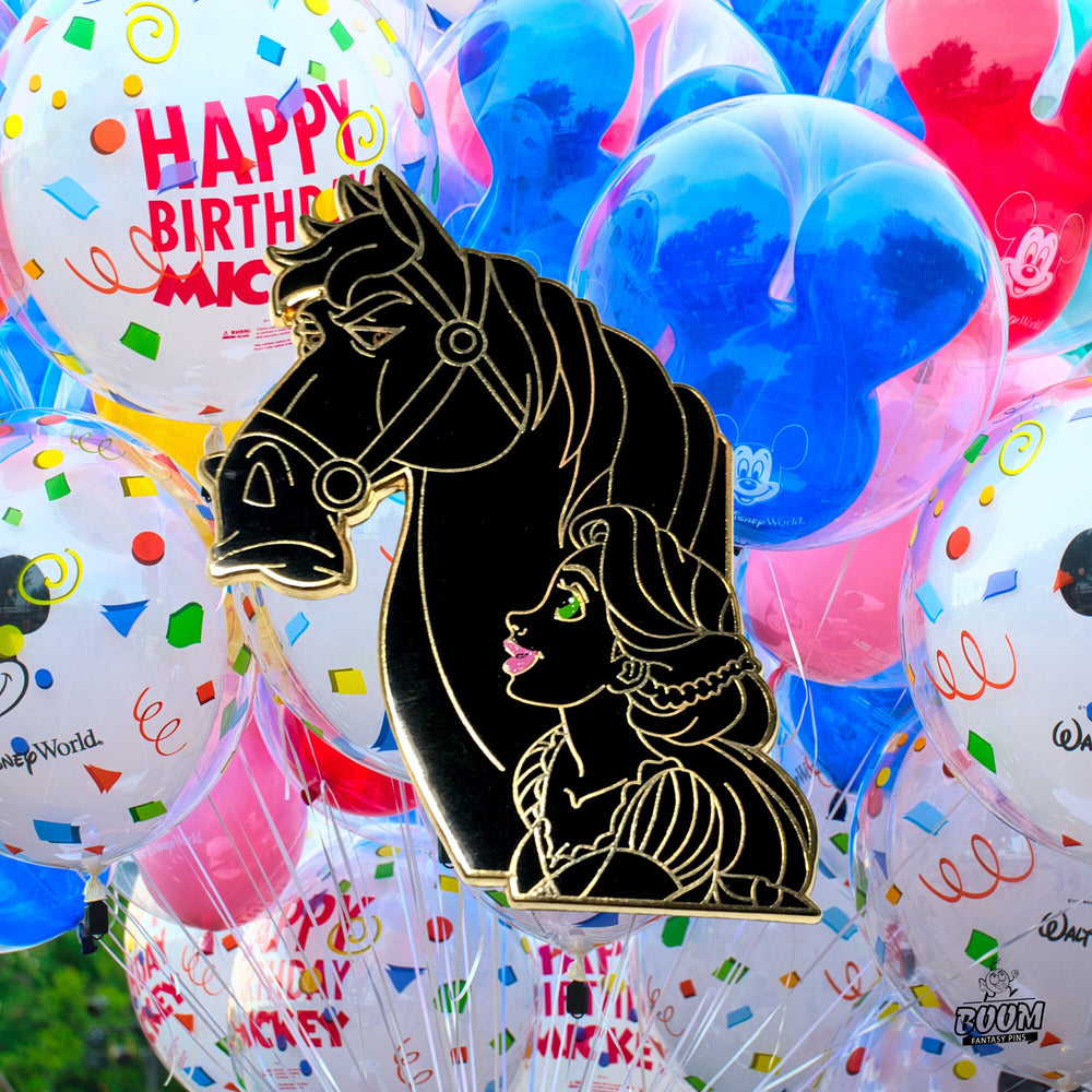 Notre pin's – Raiponce et Maximus de Raiponce – Disney Fantasy | Pin's collector Raiponce, version noire, cadeau idéal pour les passionnés d'animation et les amoureux des princesses, capture l'essence même de leur histoire et vous invite à emporter partout avec vous un souvenir de cet esprit lumineux. Il condense le cœur de leur aventure en un objet unique et élégant qui séduira les fans de tous âges.