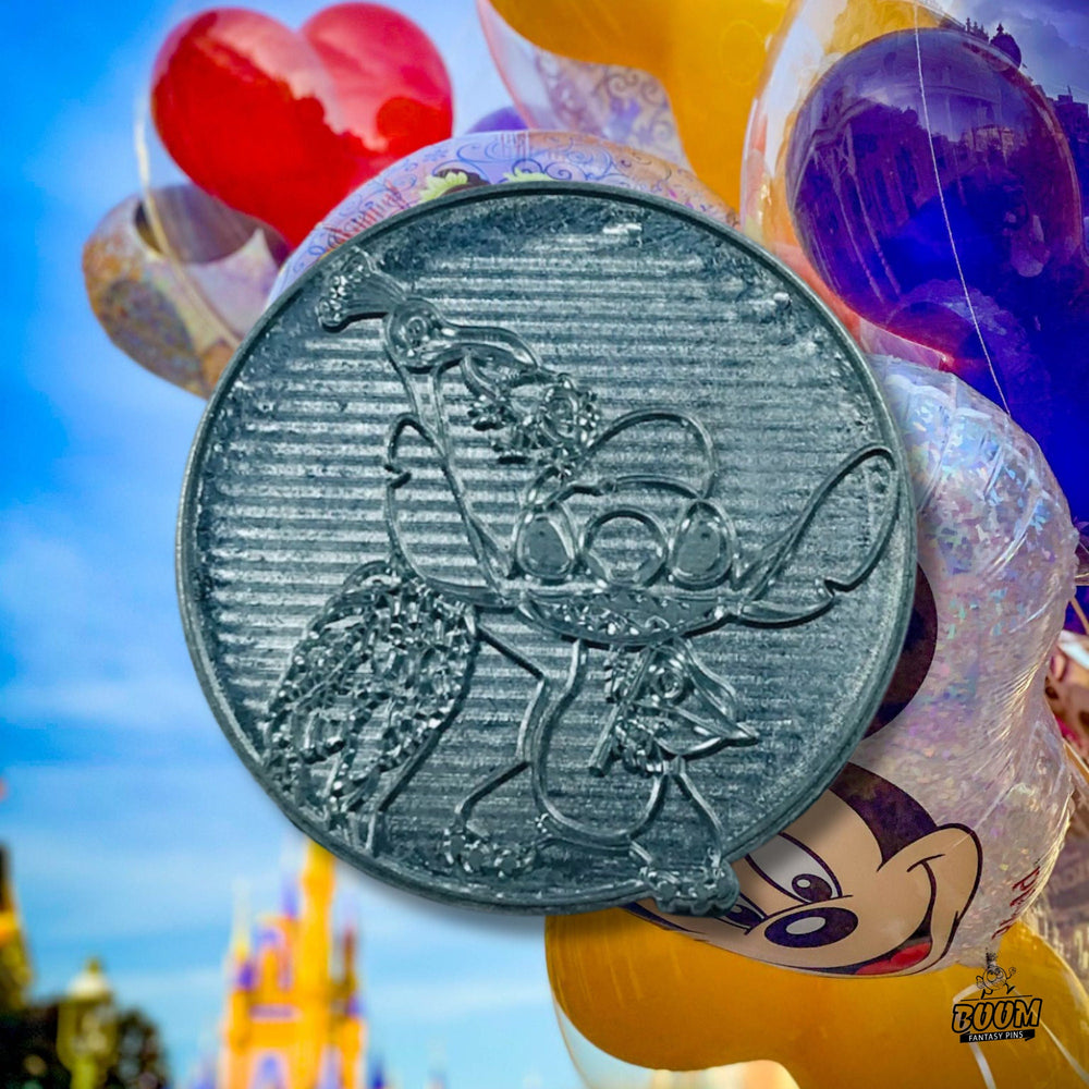 Dès leur première rencontre, l'amitié entre Stitch et Pascal se transforme en une danse d'espièglerie et de loyauté indéfectible. Cette broche capture cette danse avec une précision saisissante, révélant l'éclat malicieux dans les yeux de Stitch et le charme discret du regard attentif de Pascal. Elle évoque la joie ensoleillée des journées passées à explorer les paysages luxuriants de l'île, et la douce-amère tendresse des adieux qui renforcent leurs liens.
