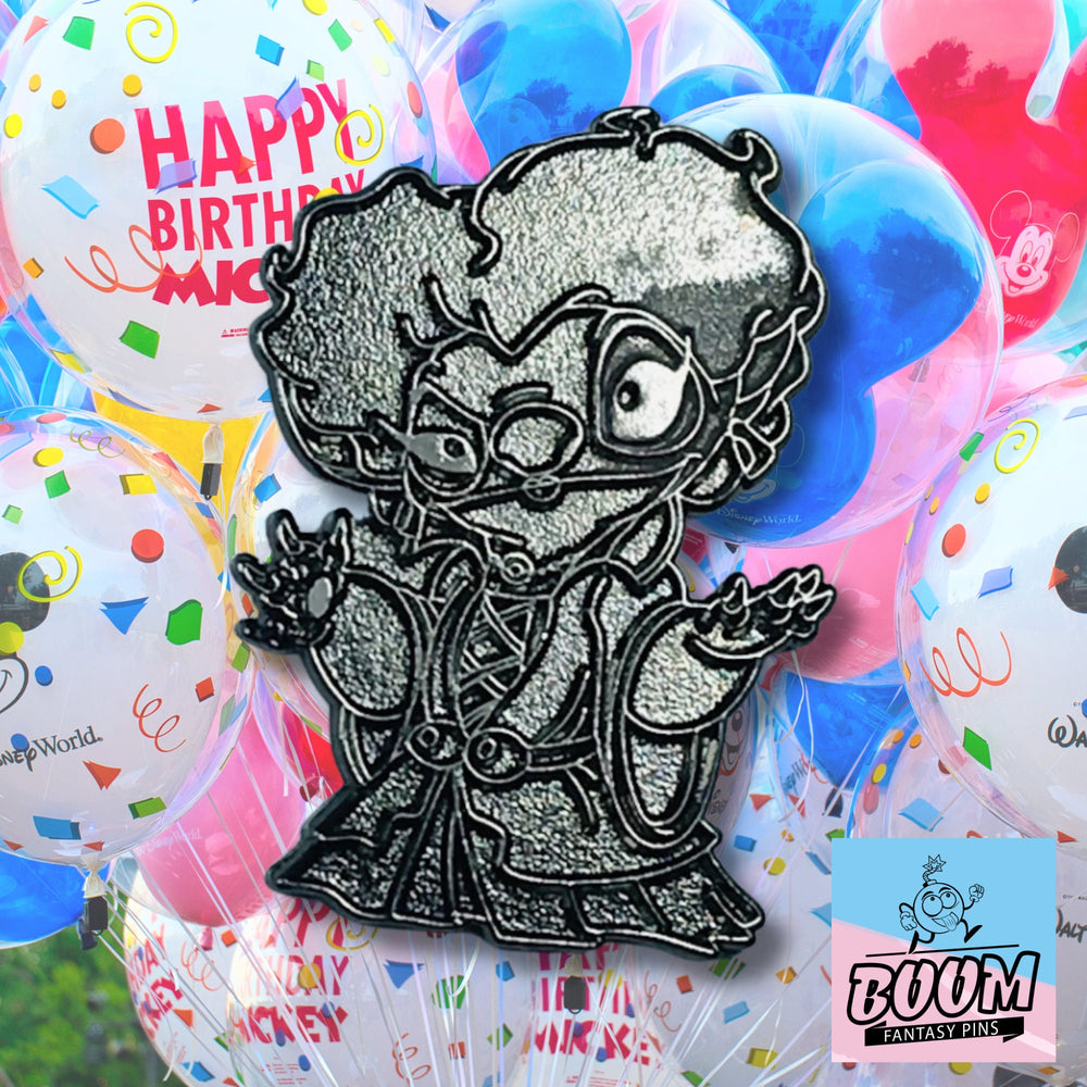 🎬 Pénétrez dans un carrefour fascinant où l'esprit indomptable de Stitch, l'expérience malicieuse des îles hawaïennes, s'entremêle à l'essence sombre et envoûtante de Winifred Sanderson, la sorcière féroce et spirituelle du clan de Salem. Ici, dans cette fusion captivante, deux mondes se rencontrent, non pas comme des opposés, mais comme des forces sœurs de magie, de malice et de sensibilité. Imaginez les plages luxuriantes et ensoleillées de Kauaʻi se fondant dans les salles obscures éclairées à la bougie où se tissent les sorts et où les secrets se murmurent. Cette remarquable broche, fruit de cette fusion remarquable, capture ce moment précis de convergence, vous invitant à embarquer pour un voyage envoûtant où l'aloha rencontre le pouvoir occulte et où l'innocence danse avec un charme malicieux.