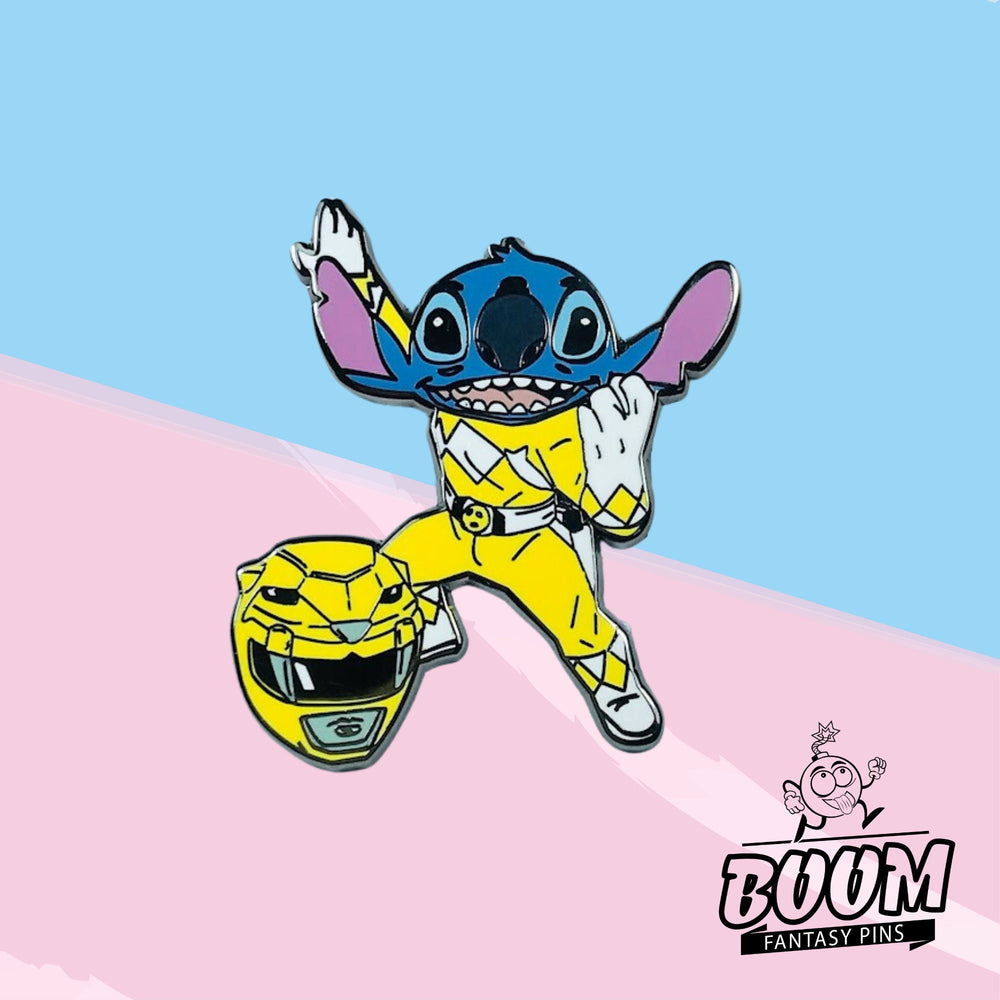 - 🦸 Fusion héroïque : L'armure audacieuse du Ranger Jaune recouvre la fourrure bleue vibrante de Stitch, symbolisant le courage, la transformation et le pouvoir du travail d'équipe face aux défis.