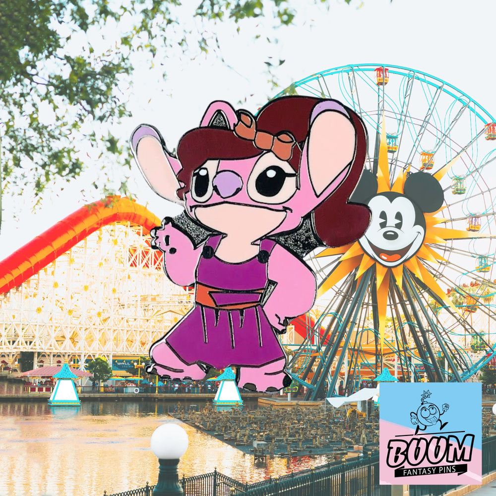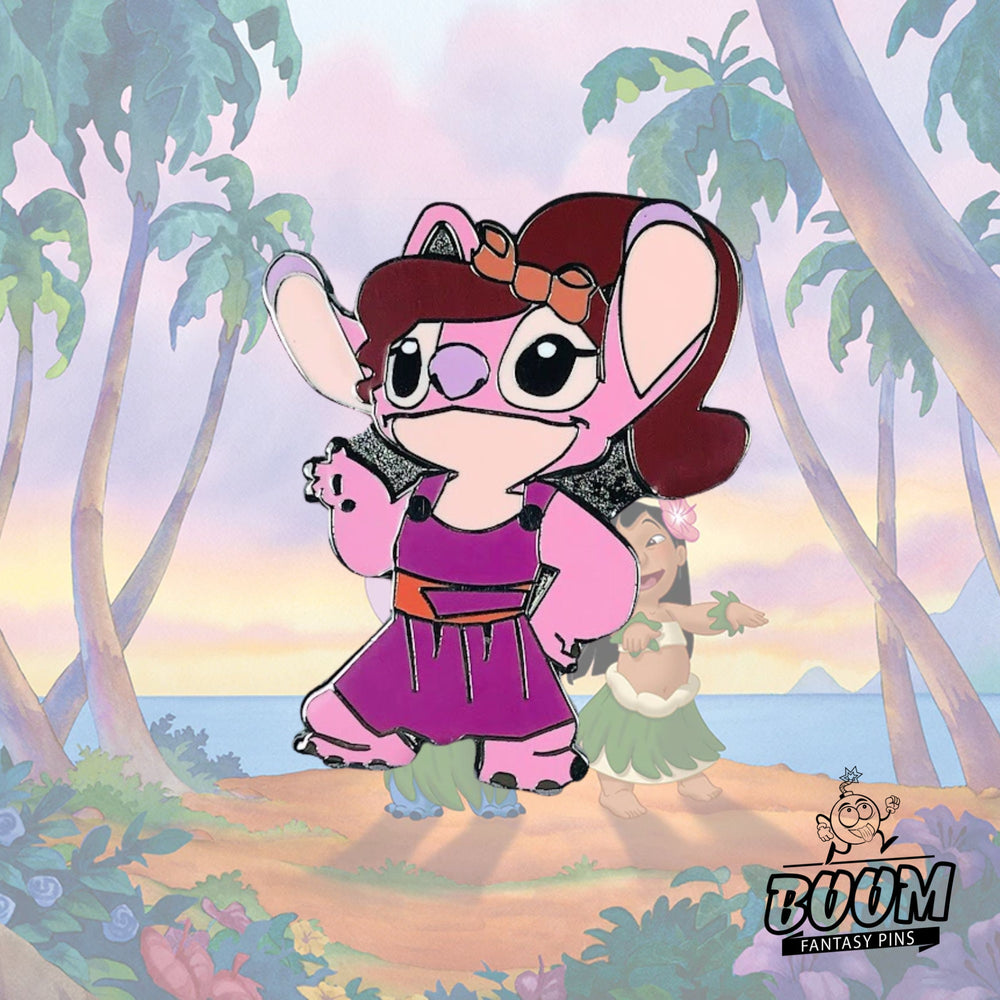 Picture the sun-drenched beaches of Hawaii, where tropical flowers sway alongside cosmic constellations — this collectible pin captures that very spirit. The lush, vibrant palette evokes the soothing ocean breezes and the vibrant cultural tapestry that defines the islands. Angel’s graceful pose, combined with the vivid hues of the tropics, invites you to slip into a realm where fantasy meets paradise, a place where every fan’s heart can find solace and joy. This pin is more than a keepsake; it is a celebration of ohana, an emblem that reminds us all that family transcends species, galaxies, and worlds.