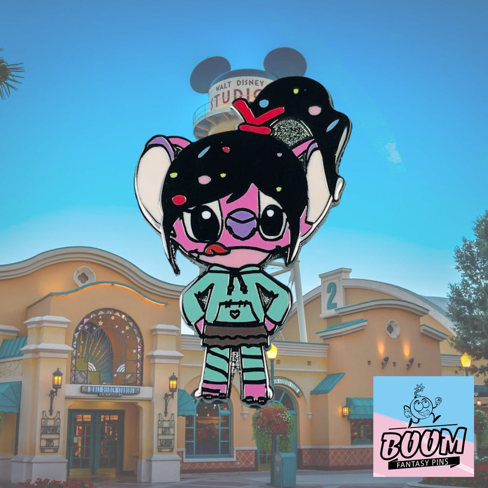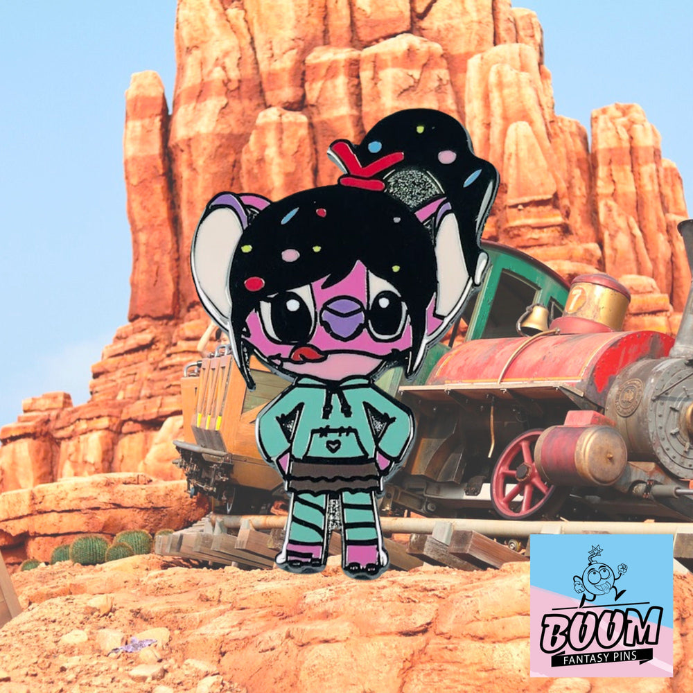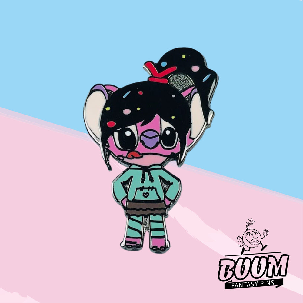 - 💖 Dual Spirit Fusion: This pin beautifully blends Angel’s gentle alien charm with Vanellope’s spirited racer attitude, embodying a unique personality that radiates warmth and courage.