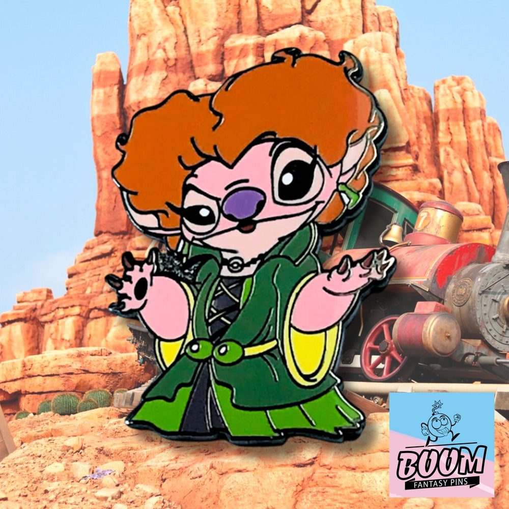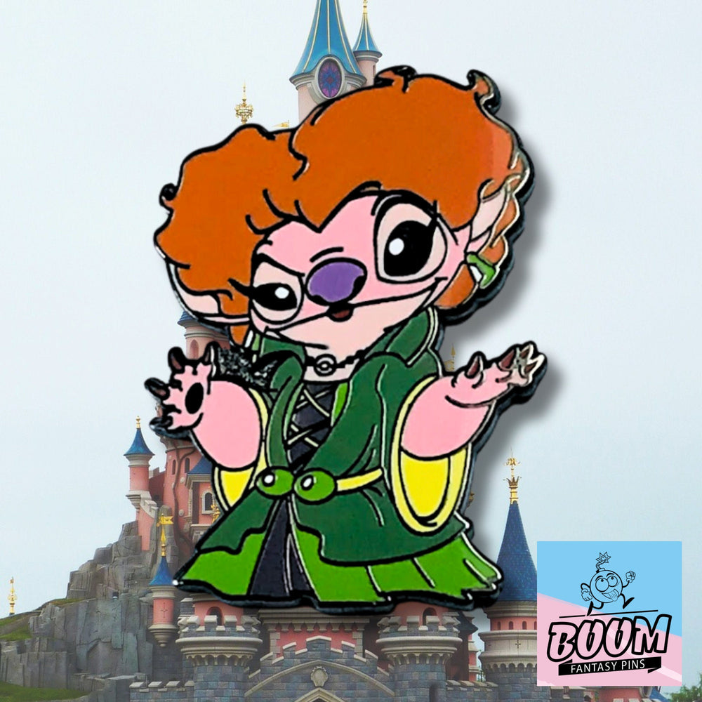 The creation of the Pin – Angel as Winifred Sanderson from Hocus Pocus is a labor of love and artistic mastery. Inspired by the rich visual storytelling of the film and the beloved character design of Angel, this pin marries two fan-favorites in a seamless celebration of creativity and fandom. Each brushstroke and color choice is deliberate, capturing the vividness of Winifred’s costume and the playful spirit of Angel’s mischievous nature.