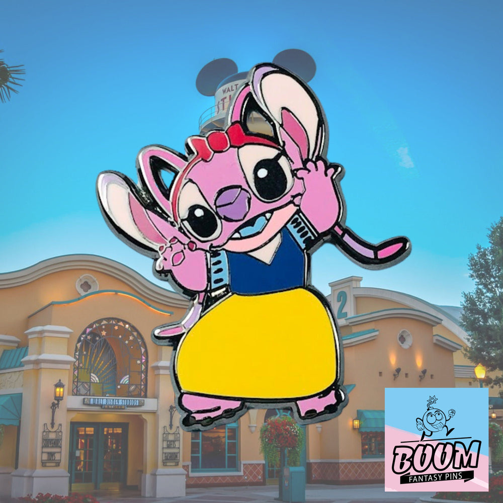 Angel’s unique appearance, combining a celestial pastel palette with the delicate charm of a Snow White-inspired costume, weaves together two worlds of fantasy and folklore. This exquisite fusion mirrors the duality of Angel’s nature: a cosmic wanderer with a heart full of earthbound tenderness. The softly luminous blues and pinks harmonize like a Hawaiian sunset reflected in calm waters, while her gentle smile radiates the promise of new beginnings and unwavering friendship. This pin captures not just a character, but a story — a living memory of the joyful, mischievous, and tender moments that define Angel’s enduring place in fans’ hearts.