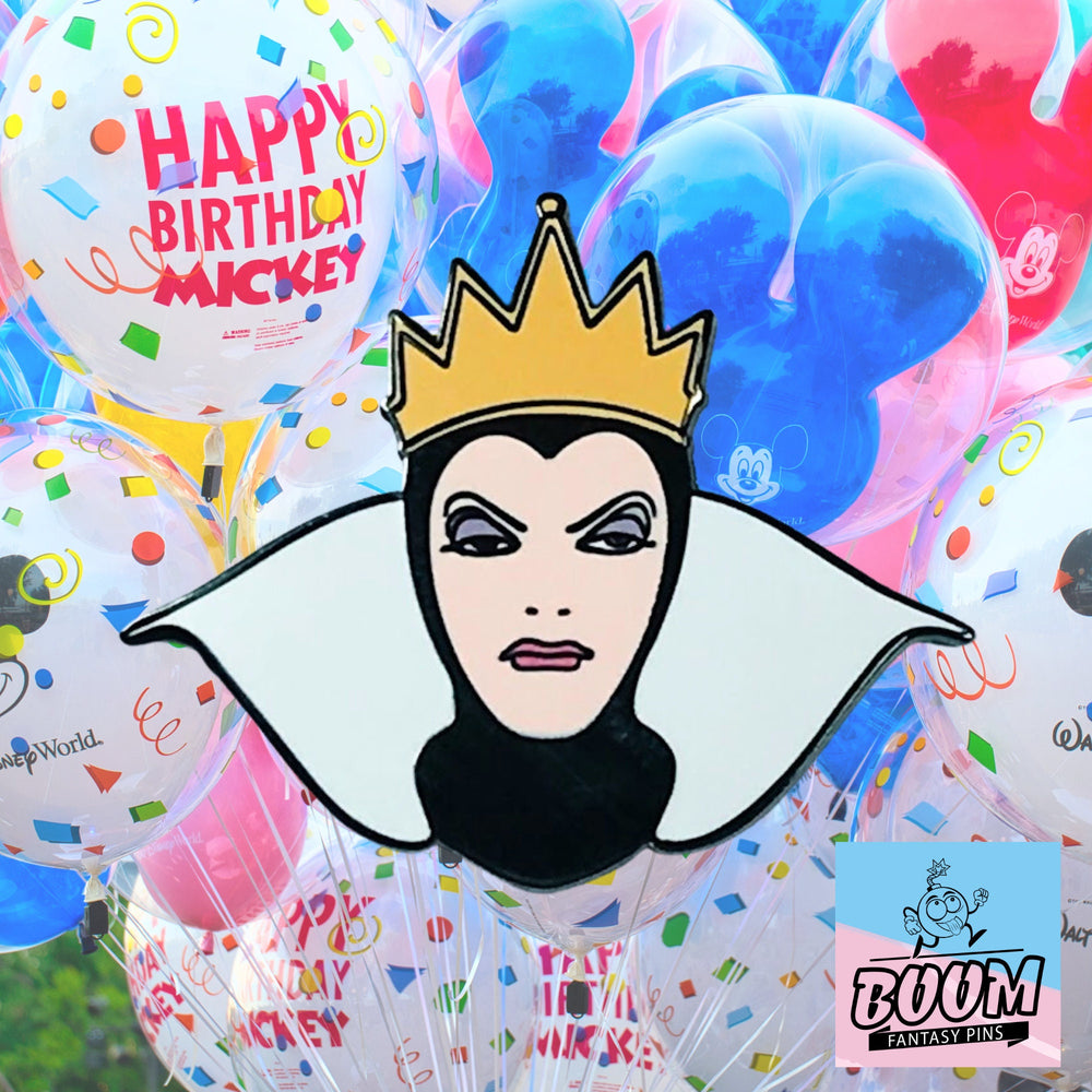 Through the artistry of Boom Fantasy, this piece is more than an accessory; it is an invitation to embrace the narrative power of fantasy and the magnetic pull of villainy. The hand-painted detail evokes the rich textures of her raven-black cloak and the vivid red of the poisoned apple, each brushstroke a testament to the queen’s enduring mystique. The pin’s design resonates with the dramatic tension of the enchanted mirror scene, where the boundaries between truth and illusion blur in a dance of light and shadow.